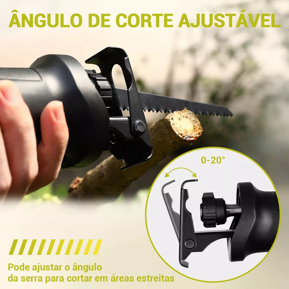 Excelente desempenho de corte: profundidade de corte de 110 mm para madeira, 60 mm para tubos de aço ocos e 6 mm para tubos de aço, além de a velocidade de corte poder ser travada com o botão de travamento, pois não há necessidade de manter o gatilho pressionado o tempo todo.